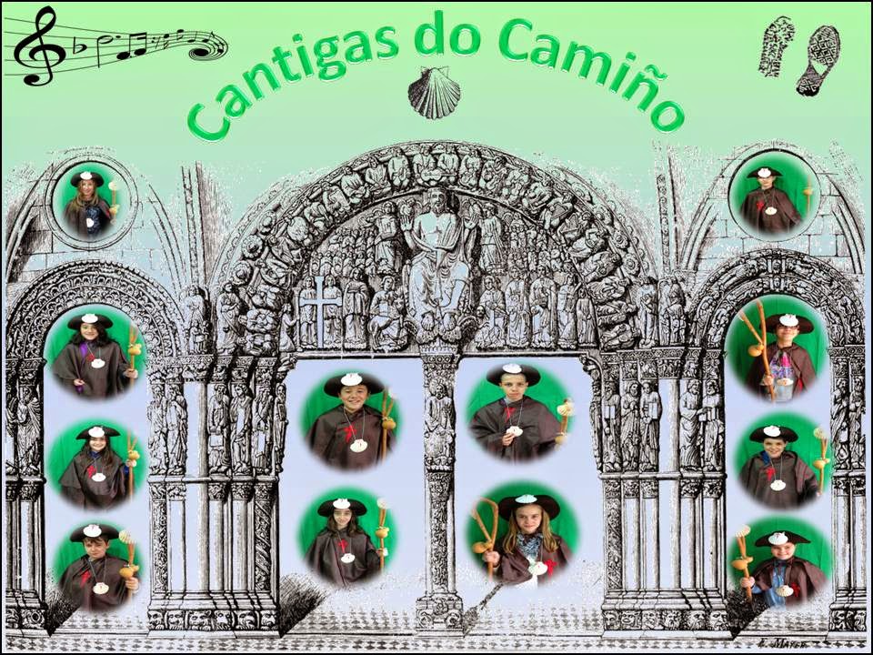 Os nenos e nenas do 3º Ciclo de Primaria traballaron sobre a música xacobea. Fixeron uns bonitos murais sobre algunhas das cantigas (medievais unhas, actuais outras) que acompañan aos peregrinos no seu andar por esta ruta milenaria.